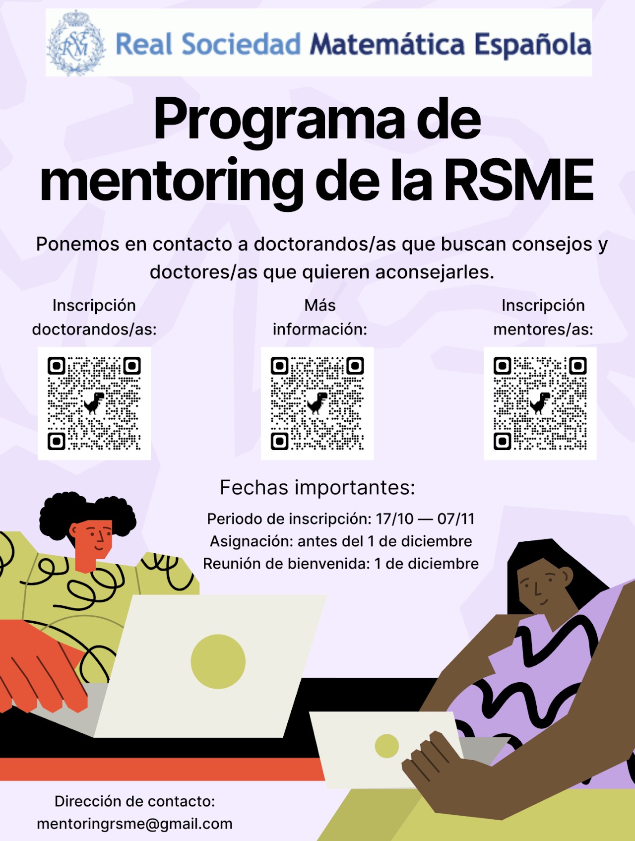 La Comisión de Mentoring de la Real Sociedad Matemática Española, ha puesto en marcha un Programa de Mentoría dirigido a estudiantes de doctorado en Matemáticas. El programa tiene como objetivo fortalecer los vínculos entre generaciones dentro de la comunidad matemática y apoyar el desarrollo personal y profesional del estudiantado de doctorado.FECHAS IMPORTANTES:
